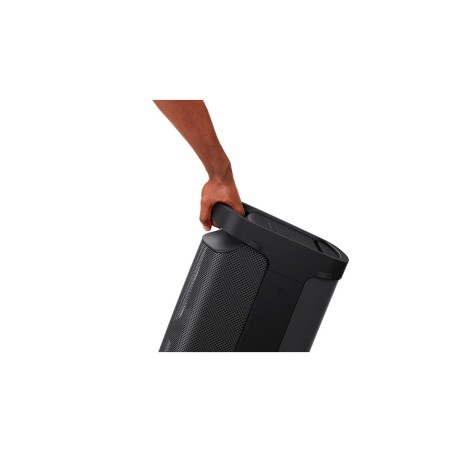 El modelo SRS-XP500 de Sony cuenta con asa de fácil agarre a la vez que tiene un diseño portátil y ligero permitiendo que puedas llevar el sonido claro e impactante a cualquier sitio de la casa e inclusive al exterior.