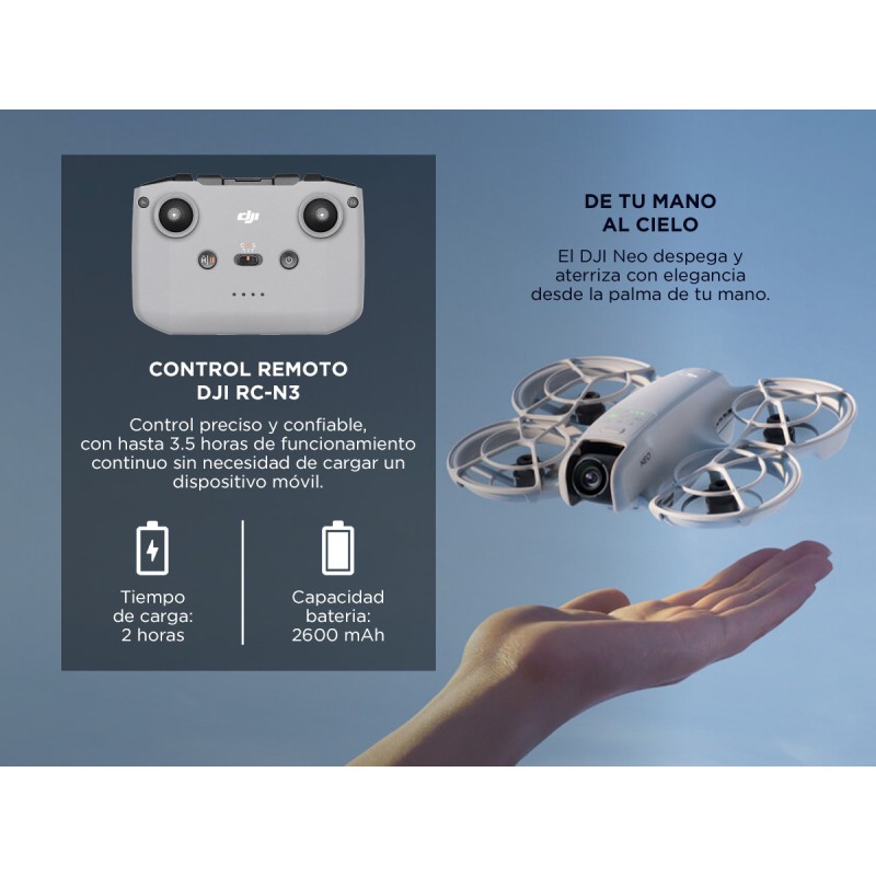 Además, su sistema de transmisión de vídeo de última generación asegura una experiencia de vuelo inmersiva y una conexión confiable a distancias sorprendentes. Ideal tanto para principiantes como para profesionales, el DJI Neo Fly More Combo redefine la facilidad de vuelo y la calidad visual en un solo dispositivo.