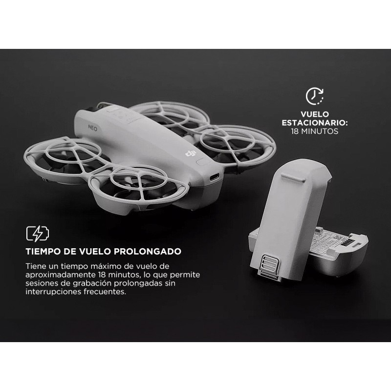 El DJI Neo Fly More Combo es un drone ultraligero y compacto, acompañado de un control remoto, diseñado para capturar momentos inolvidables con una calidad cinematográfica. Con su avanzada cámara 4K, estabilización mecánica y electrónica, y un tiempo de vuelo de hasta 18 minutos, el DJI Neo Fly More Combo es la herramienta perfecta para fotógrafos y film makers que buscan portabilidad sin comprometer el rendimiento.