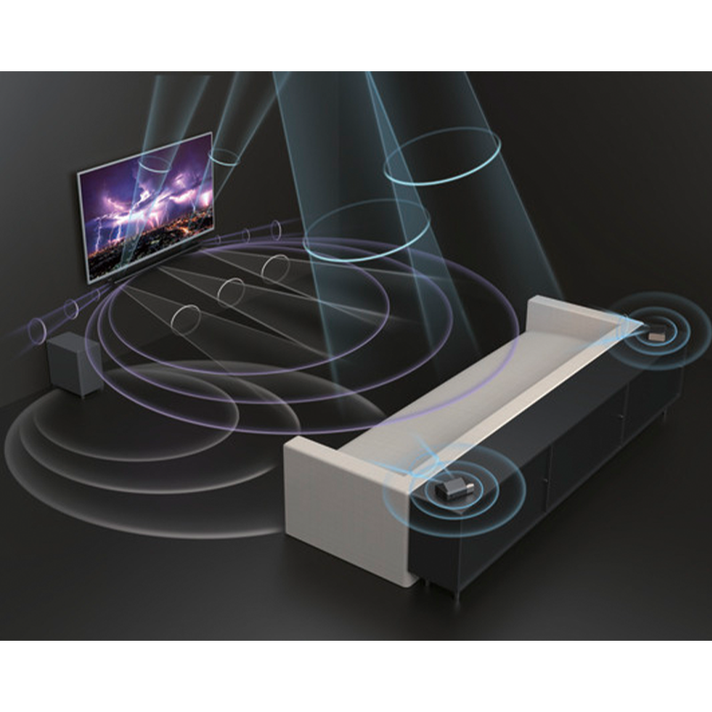 ¿Quieres sumergirte por completo en la noche de cine? Solo tienes que quitar los altavoces extraíbles de los extremos de la barra de sonido y colocarlos detrás para crear un auténtico sistema de sonido envolvente. El canal central exclusivo te garantiza que podrás escuchar, ya sean superproducciones o podcasts.