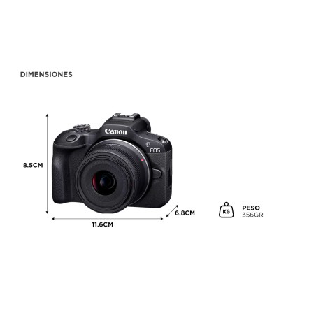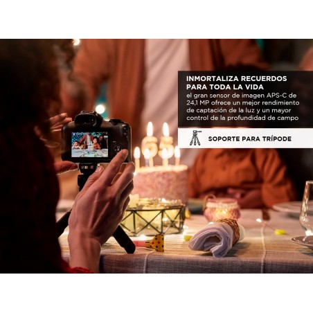 Gracias a su enfoque automático Dual Pixel AF y sus funciones de conectividad como Wi-Fi y Bluetooth, podrás compartir y transferir tus mejores momentos de forma rápida y sencilla. Su diseño compacto y ergonómico la convierte en la compañera perfecta para llevar a todos lados.