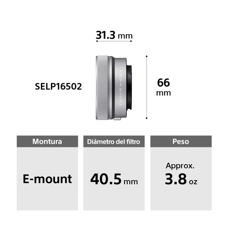 Compatibilidad con lentes: Lentes con montura E de Sony