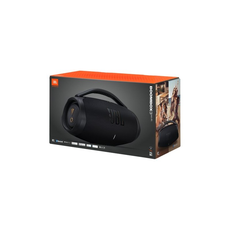 El parlante portátil JBL Boombox 3 redefine la experiencia de sonido inalámbrico combinando potencia, diseño robusto y autonomía extendida. Creado para quienes buscan un rendimiento superior tanto en interiores como en exteriores, este equipo se destaca por su estructura sólida con asa metálica reforzada, empuñaduras de silicona y carcasa resistente al agua y al polvo, ideal para acompañarte en cualquier ocasión. Su estética moderna y materiales de alta calidad transmiten durabilidad, tecnología y estilo.