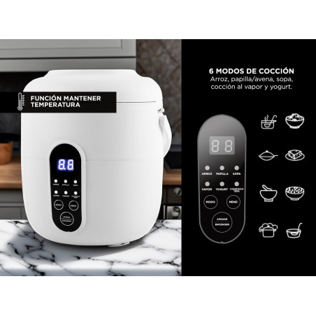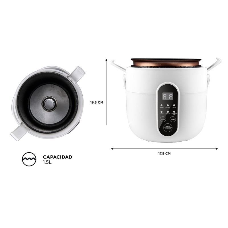 Funciones: Arroz, avena, sopa, vapor, yogur, mantener caliente