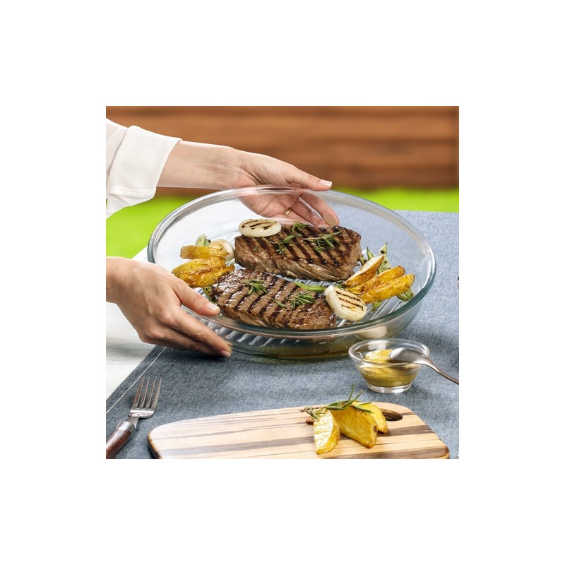 Fuente Borsosilicato Vidrio Redonda con borde y base GRILL