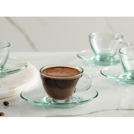 Taza Tacita con Plato Vidrio Cafe Pasabahce Reciclado 98 cc Cortadito