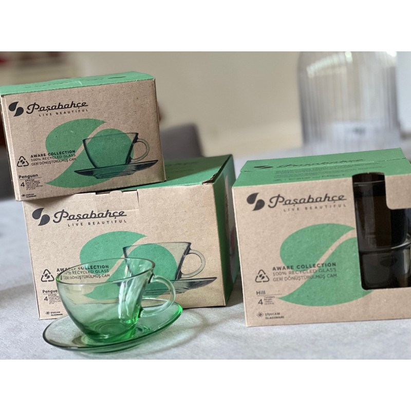 Set compuesto x 4 Taza y Plato en Vidrio Reciclado