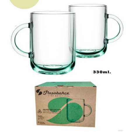 Set x 2 taza Mug Jarro Vidrio Reciclado 330 cc Pasabahce