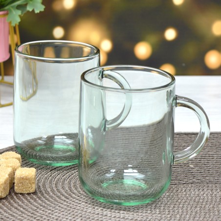 Set compuesto x 2 Tazas Jarros Mug con agarre ( manija) en Vidrio Reciclado