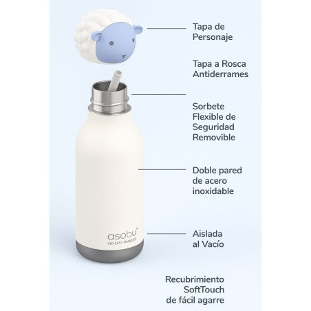 ¡Una botella única, divertida y funcional! La botella Asobu Bestie es una botella de agua con doble capa de acero inoxidable y un un diseño tan adorable ¡que hasta incluye un personaje distintivo en la tapa! Hay diferentes opciones para elegir, cada una con una personalidad propia. ¡Elegí la que más te guste!