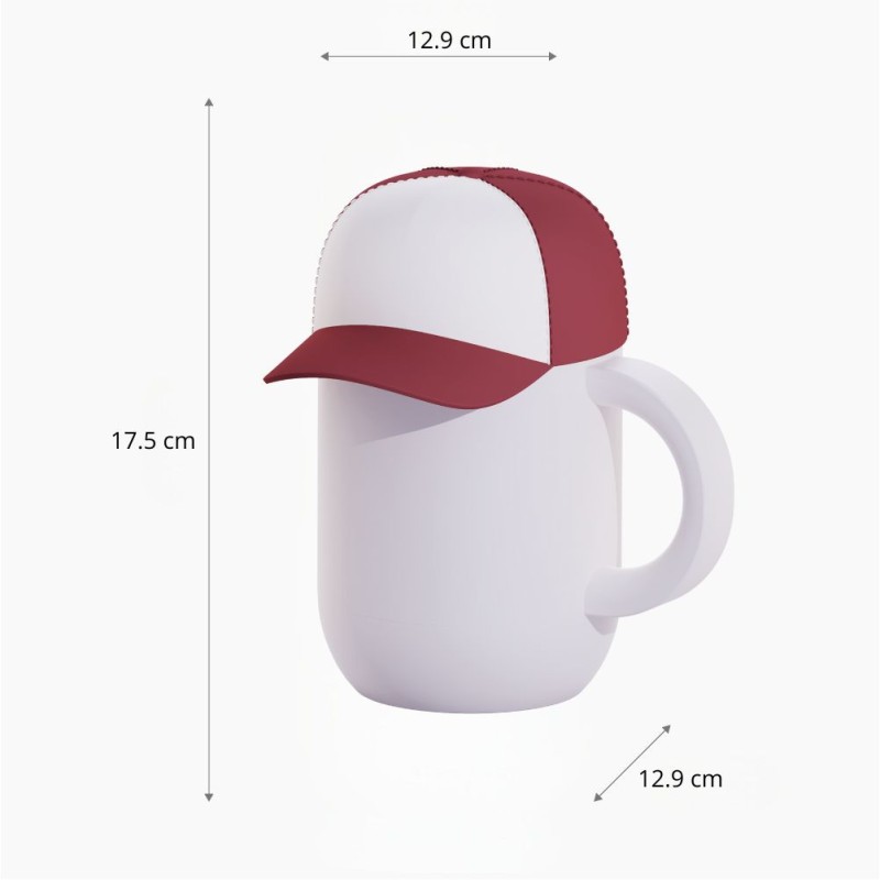Este original diseño incluye una tapa con forma de gorra que suma un detalle único y lúdico a tu rutina diaria.
