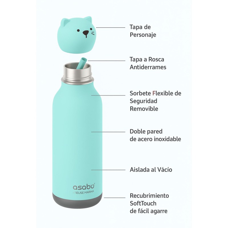 ¡Una botella única, divertida y funcional! La botella Asobu Bestie es una botella de agua con doble capa de acero inoxidable y un un diseño tan adorable ¡que hasta incluye un personaje distintivo en la tapa! Hay diferentes opciones para elegir, cada una con una personalidad propia. ¡Elegí la que más te guste!
