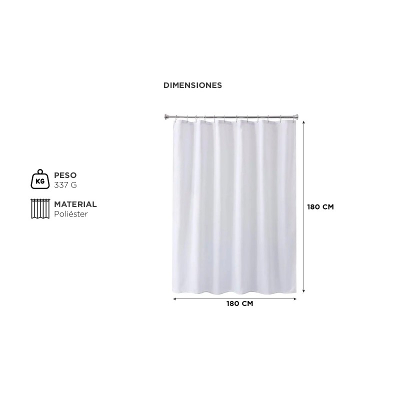 Con unas medidas de 1,8x1,8 m, esta cortina de baño proporciona una amplia cobertura para mantener el agua contenida dentro del área de la ducha, minimizando salpicaduras y filtraciones. Disfruta de tus duchas sin preocuparte por dañar el piso de tu baño.