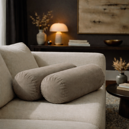 - 1 almohadón cilindro/caramelo con funda y relleno