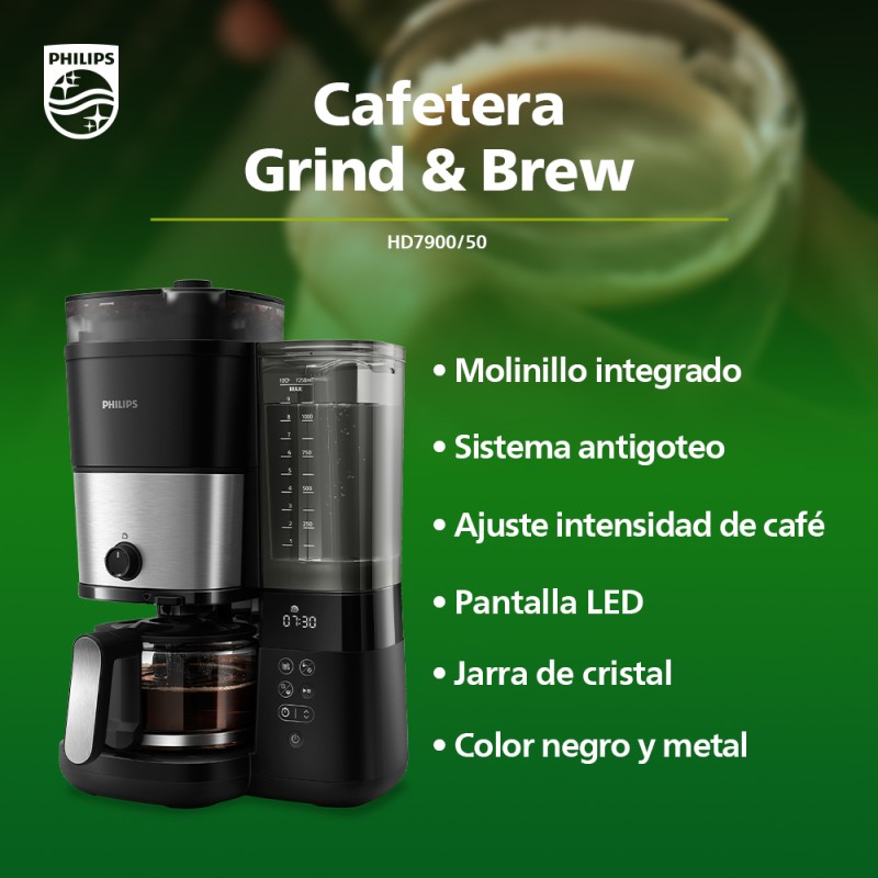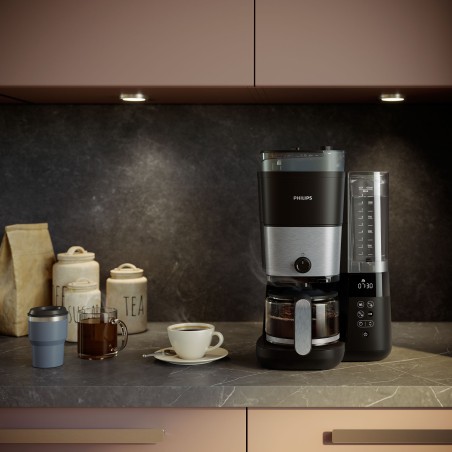 Delicioso café de granos frescos: puede despertar a su familia con una jarra llena o preparar café en su taza favorita para disfrutar de un descanso durante la tarde. Seleccione la intensidad y la máquina extraerá la cantidad de agua exacta para preparar un café perfecto a la temperatura adecuada.