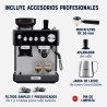 - ACCESORIOS PROFESIONALES INCLUIDOS: Filtros simples y presurizados de 1 y 2 tazas, jarra de leche, prensador de café y pin de limpieza para que tengas todo lo que necesitas en casa