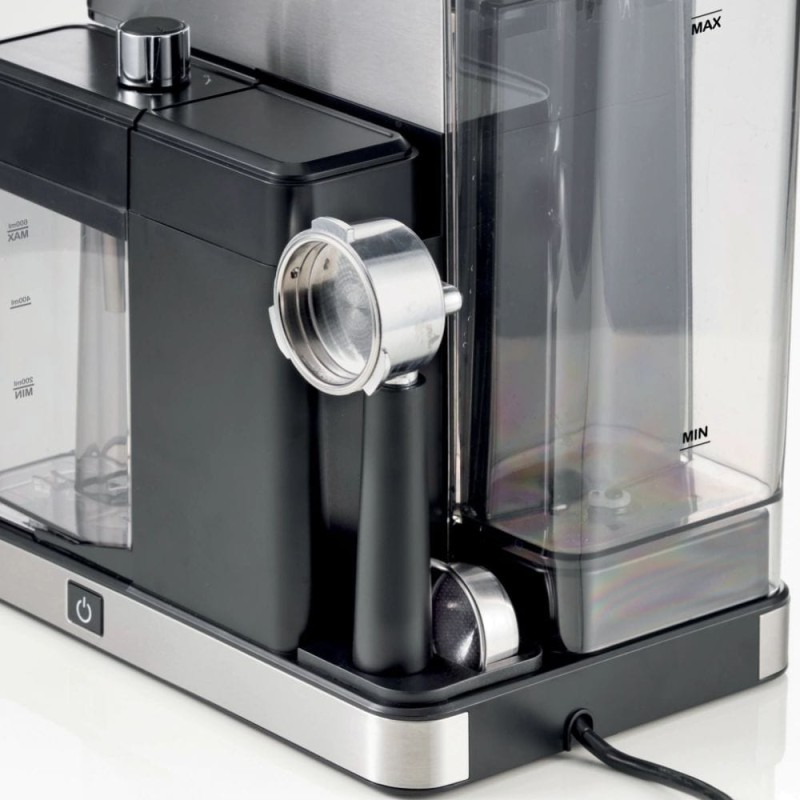 Compacta y moderna. Compatible con café espresso molido y sobres. Panel de control fácil de usar, pantalla tácti. Dispositivo capuchino con sistema automático de espuma de leche. Bomba italiana ULKA de 15 bar.