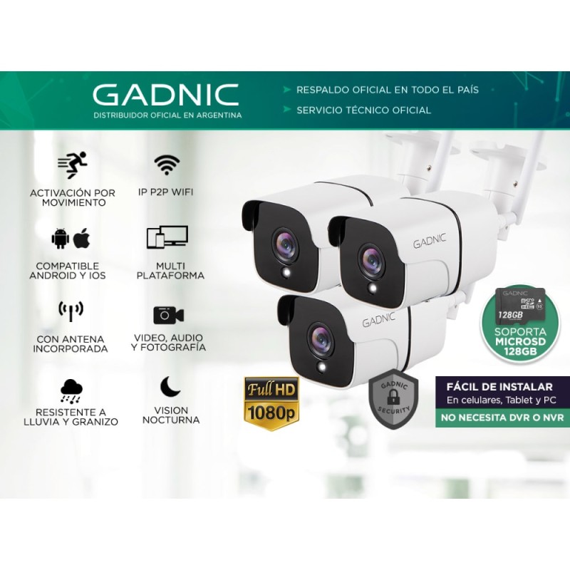 Kit Camaras de Seguridad Gadnic IP Wifi Exterior x3