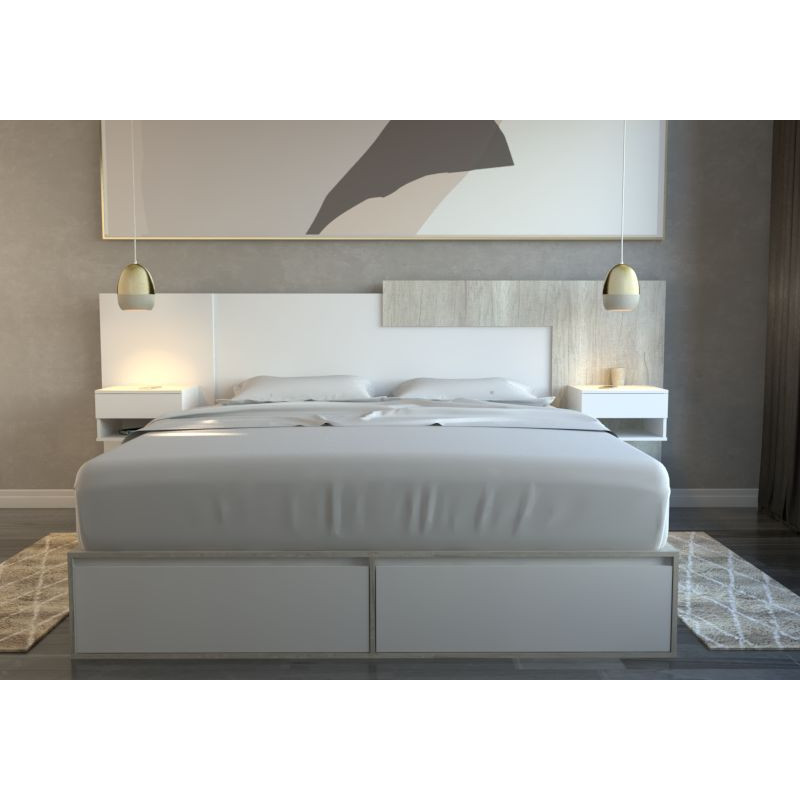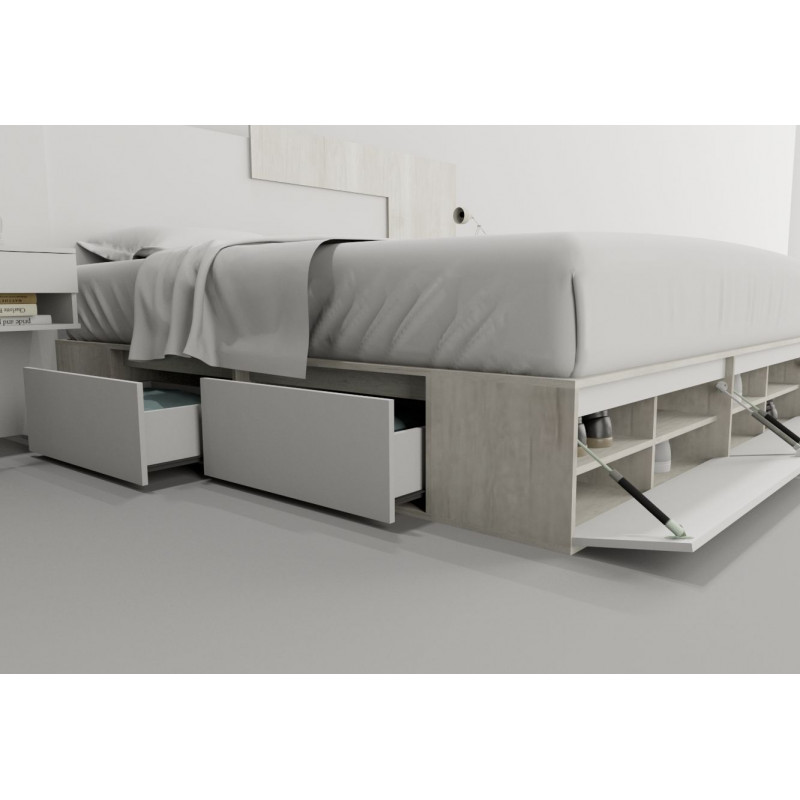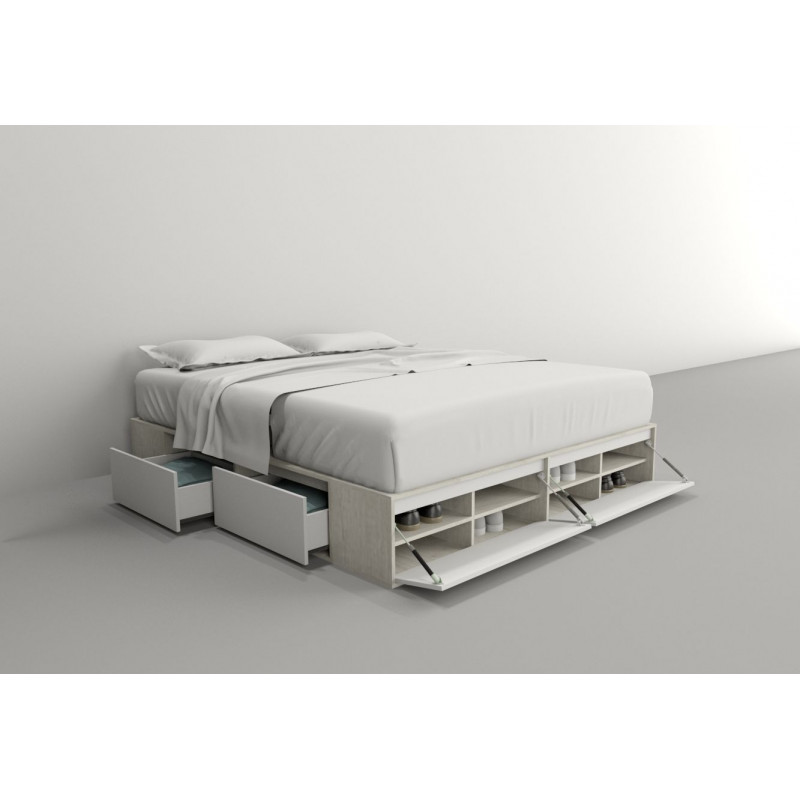 Box De Cama Con Cajonera + Zapatero 6444 King Base Sommier 1,80m, para colchones de 180x200.