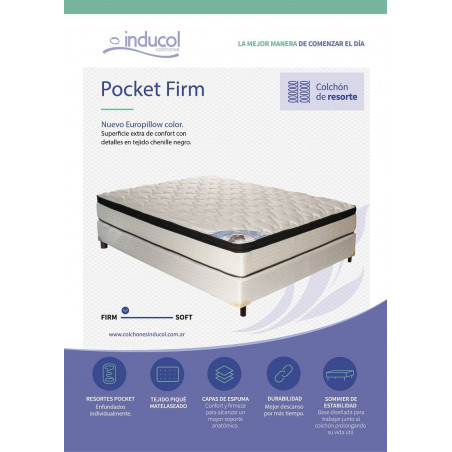 Producto: Colchón Resortes 2 Plazas Inducol Pocket Firm Europillow 140x190x26 120kg
