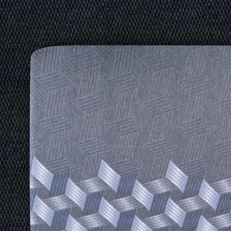 La funda en tejido de punto con diseño y bordado exclusivo no solo adorna el colchón, sino que también se extiende elegantemente a la base, creando una superficie de contacto suave y lujosa que refleja la calidad excepcional de este conjunto sommier.