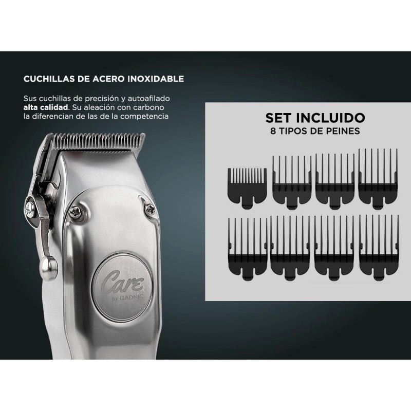 Diseñada para un corte suave, rápido y preciso en todo tipo de cabello con cuchillas de acero inoxidable de precisión de autoafilado de alta calidad. Su aleación con carbono la diferencian de las de la competencia haciéndolas mas duraderas.