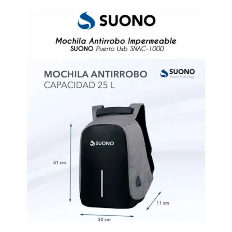 La mochila antirrobo impermeable Suono SNAC-1000 es ideal para adultos que buscan comodidad y seguridad en sus desplazamientos diarios. Con una capacidad de 25 L, esta mochila está fabricada en poliéster reforzado, lo que la hace resistente y duradera. Además, su diseño antirrobo brinda tranquilidad al usuario.