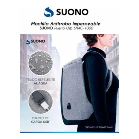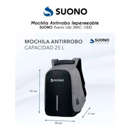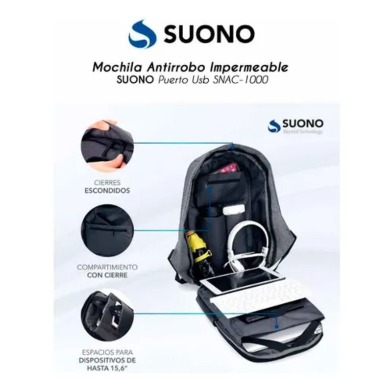 MOCHILA ANTIRROBO IMPERMEABLE SUONO PUERTO USB SNAC-1000