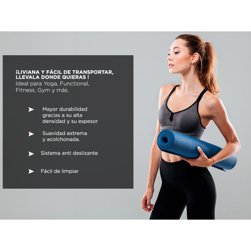 Simplemente use la correa para el hombro para transportarla a su próximo ejercicio de yoga, pilates, estiramiento o tonificación. Esta alfombra cómoda es extra gruesa, densa y se so