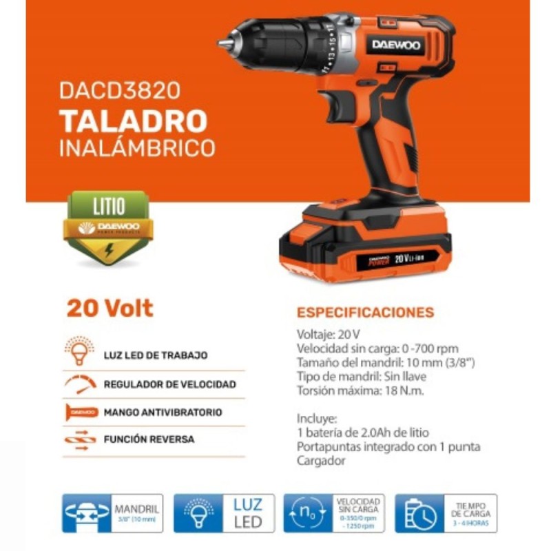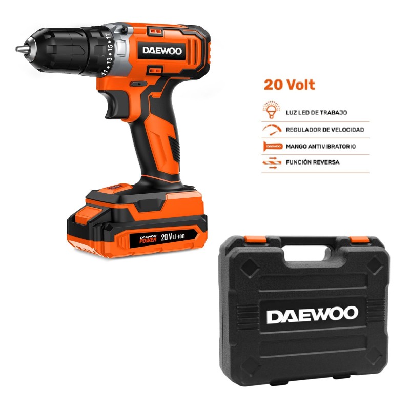 El taladro atornillador inalámbrico DACD3820 es la herramienta ideal para quienes buscan potencia y versatilidad en sus proyectos. Equipado con una batería de litio de 2Ah, garantiza un rendimiento duradero y confiable. Con una velocidad de 700 RPM se adapta a diferentes tareas, mientras que el mandril de 10 mm (3/8?) facilita el cambio rápido de mechas y puntas. Con una torsión máxima de 18 Nm y 17+1 ajustes de torsión, proporciona el control preciso necesario para cada aplicación. Compacto y ligero, el DACD3820 es perfecto para el trabajo diario en el hogar.