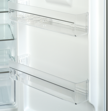 Su diseño en acero inoxidable se integra perfectamente a la cocina moderna, mientras que el dispenser de agua en la puerta, el Twist Ice Maker, los estantes de vidrio templado con bordes antiderrame y la iluminación LED interior brindan practicidad y confort de uso.