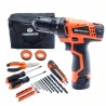 Incluye: Luz LED, bolso y 36 accesorios (destornillador de punta plana, destornillador de punta en cruz, cutter, 10 mechas, 1 medidor y 20 puntas de destornillador)