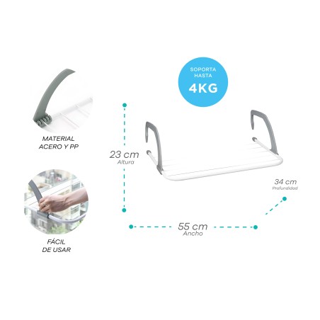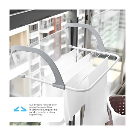 -Adaptabilidad: Sus brazos regulables y plegables permiten ajustarlo a cualquier baranda, balcón, u otras superficies adaptándose a tus necesidades.