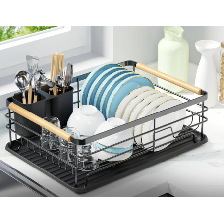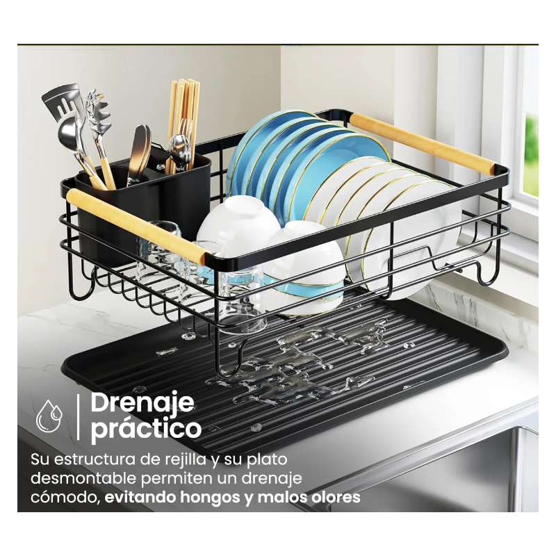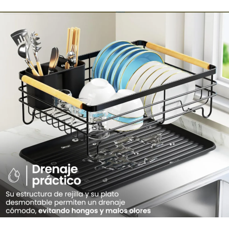 Secaplatos con bandeja escurridora, ideal para mantener la vajilla seca y ordenada. Diseño funcional y moderno para cualquier cocina.