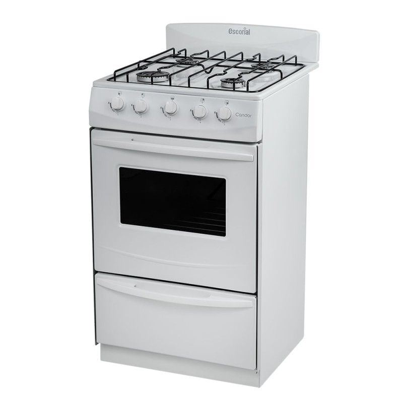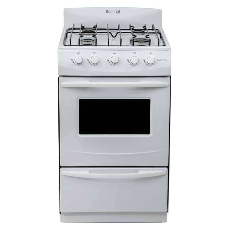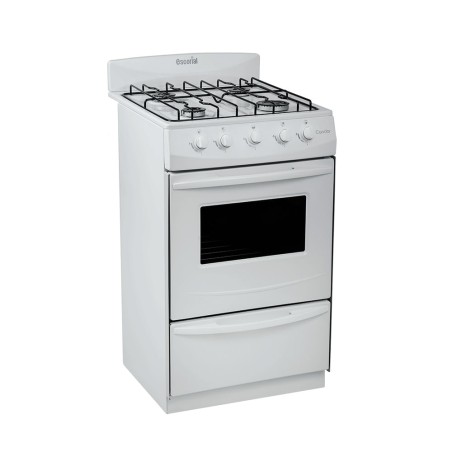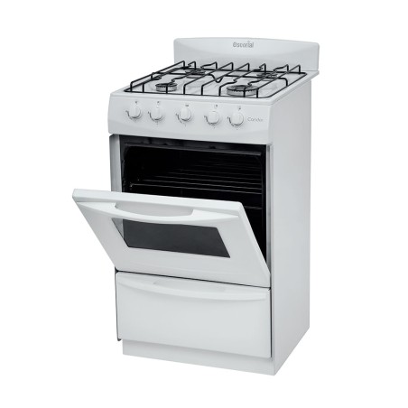 La Escorial Candor S2 es una cocina de diseño clásico en color blanco que cuenta con cuatro hornallas; horno y cajón parrilla independiente. Dispone de 1 quemador grande y 3 medianas. Por otro lado, está preparada para Gas Natural.