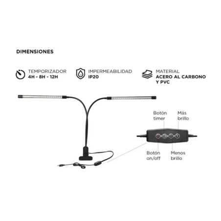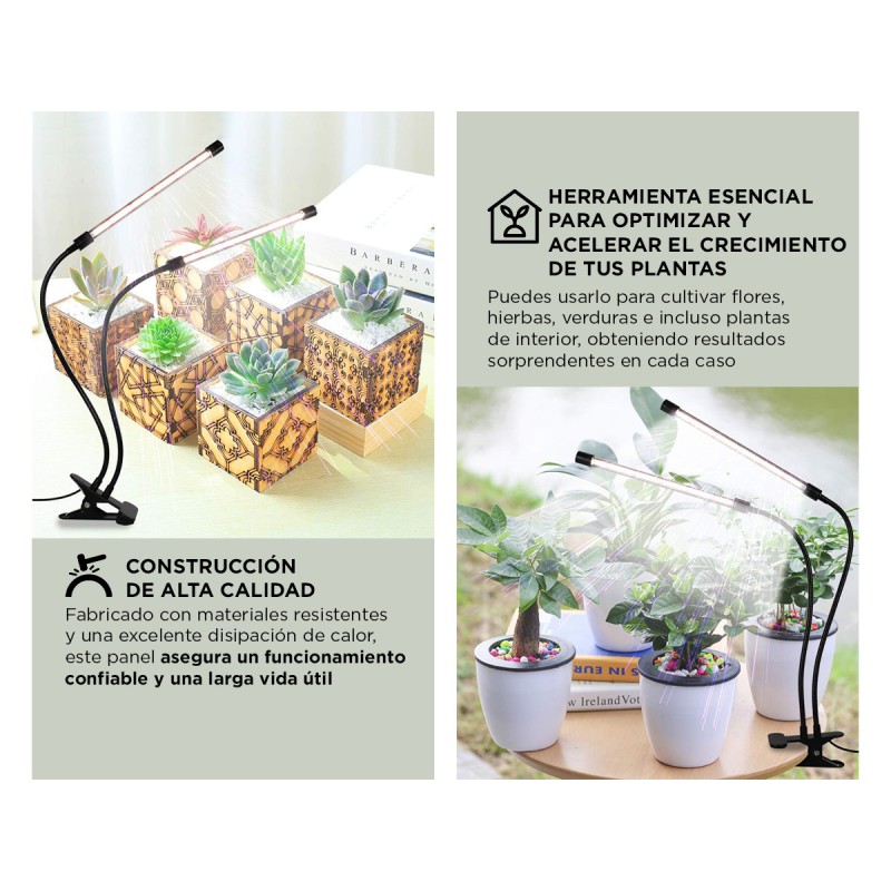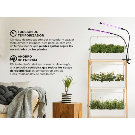 Una de las características más destacadas es su función de temporizador. Olvídate de preocuparte por encender y apagar manualmente las luces, este panel cuenta con un temporizador que puedes ajustar según las necesidades de tus plantas.