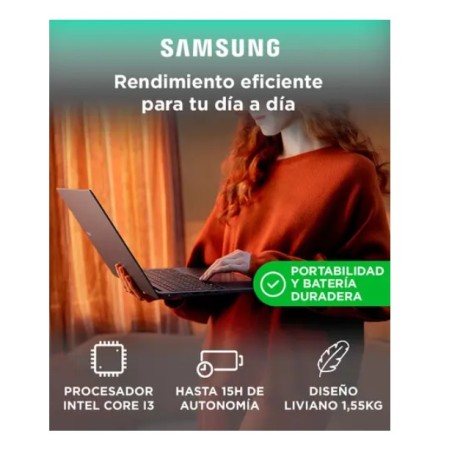 El Samsung Galaxy Book 4 con procesador Intel Core i3 de 13ª generación, 8 GB de RAM y 256 GB SSD combina potencia y movilidad, ideal para quienes necesitan trabajar o estudiar en cualquier lugar.