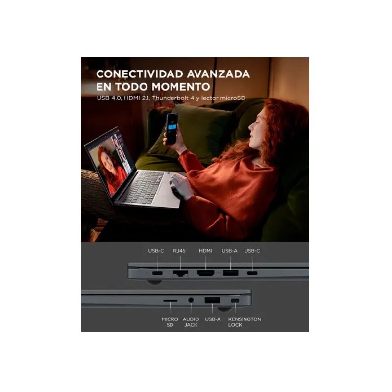 - Conectividad: Thunderbolt 4, HDMI 2.1, USB 4.0, WiFi 6E, Bluetooth 5.3