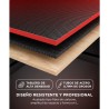 Estructura ultra estable en Z: Acero reforzado con patas regulables que evitan movimientos molestos.