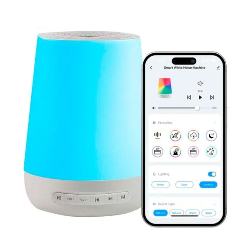 Esta máquina no solo crea un entorno auditivo relajante, sino que también presenta un sorprendente efecto de iluminación. Transforma tu espacio en un remanso de serenidad con luces suaves y cambiantes que pueden adaptarse a tu estado de ánimo y necesidades.
