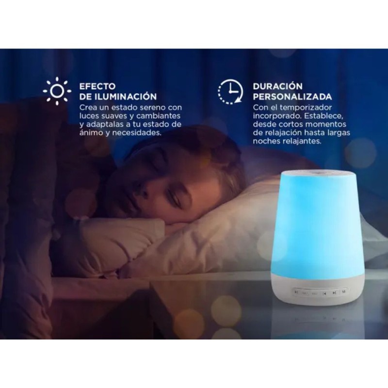 Ya sea para conciliar el sueño, relajarte después de un largo día o crear el ambiente perfecto para concentrarte, esta máquina tiene todo lo que necesitas para crear un oasis de calma en tu vida cotidiana.