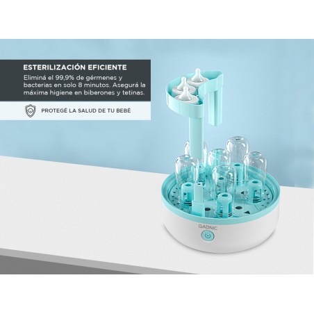 Esterilización eficiente: Elimina el 99.9% de los gérmenes y bacterias dañinas, asegurando la máxima higiene en cada biberón. Protege la salud de tu bebé y brinda tranquilidad a los padres preocupados.