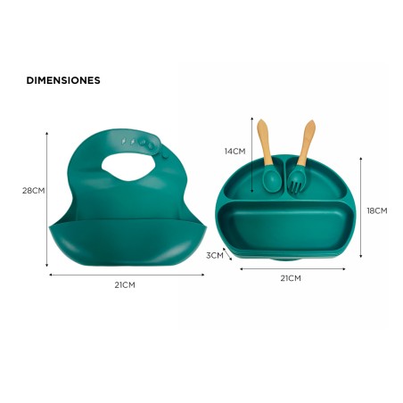Nuestro set de alimentación para bebés de silicona cumple con los más altos estándares de seguridad y calidad. Está hecho de silicona de grado alimenticio, libre de BPA y otros productos químicos dañinos. Además, la silicona es fácil de limpiar, resistente a las manchas y apta para lavavajillas, lo que facilita la limpieza después de cada comida.
