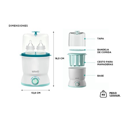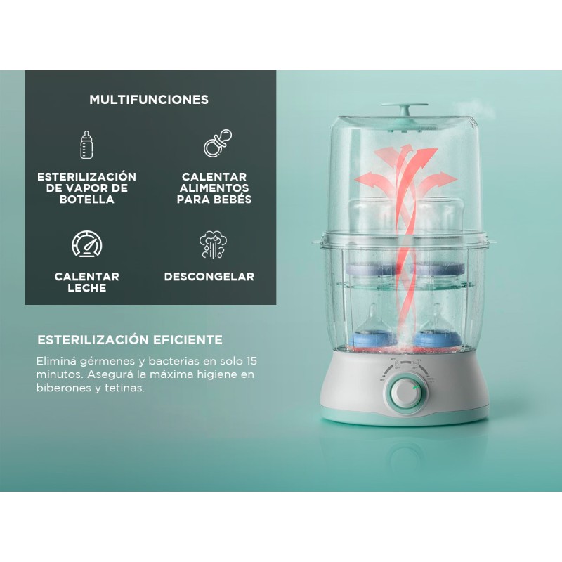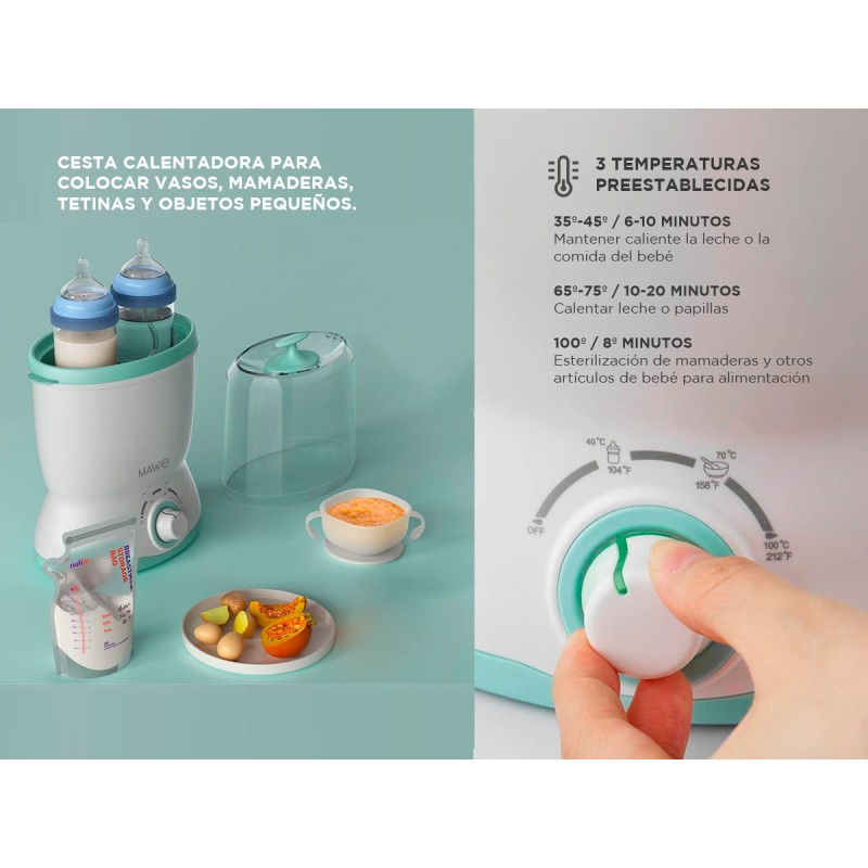 Multifuncionalidad: No solo calienta mamaderas, sino que también puede descongelar alimentos y mantener la leche a una temperatura constante. Es una solución completa para la preparación de alimentos de bebés.