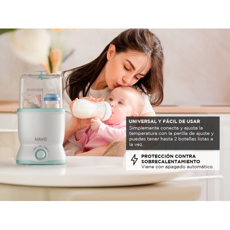 Ajuste de Doble Botella: Su diseño permite calentar dos mamaderas simultáneamente, lo que es ideal para familias con múltiples niños pequeños.