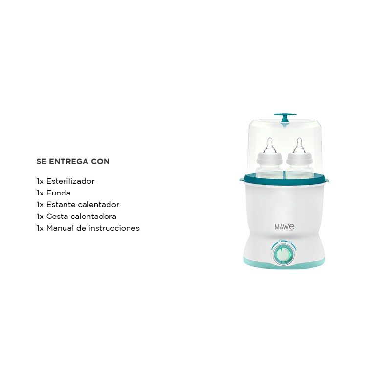Calentamiento o esterilización simultánea de hasta 2 mamaderas de cuello ancho.