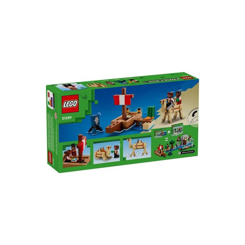 Embárcate en una aventura emocionante con LEGO Minecraft El Viaje en el Barco Pirata 21259. Este conjunto de 166 bloques permite a los jugadores de todas las edades explorar el mundo de Minecraft a través de la construcción de un barco pirata. Los personajes incluidos, como el espadachín, el bucaniro, el camello y un calamar, brindan la oportunidad de recrear batallas épicas y crear historias únicas.