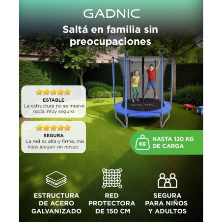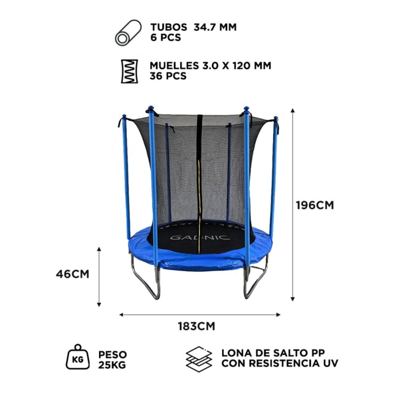 Lona de salto UV-resistant + muelles de acero para mayor elasticidad.