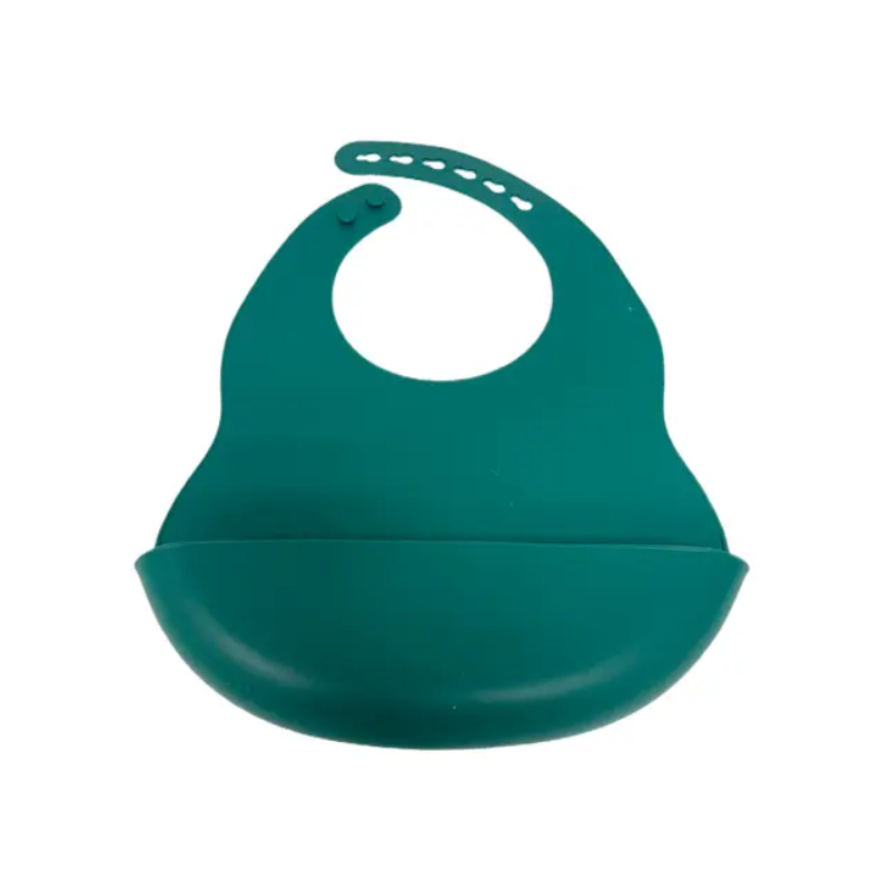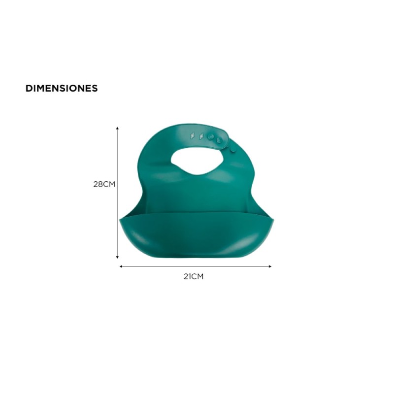 El babero está hecho de silicona de grado alimenticio de alta calidad, lo que lo hace seguro y suave para la delicada piel de tu bebé. Su diseño regulable con botones permite ajustarlo fácilmente al tamaño adecuado para el cuello del bebé, asegurando un ajuste cómodo y seguro d