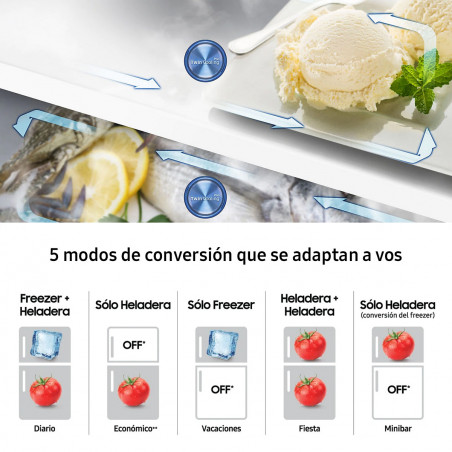 Ofrece lo último en almacenamiento flexible. Convertí fácilmente tu freezer en una heladera para mantener todos los alimentos frescos que necesites almacenar para diferentes temporadas u ocasiones especiales. O cambiá a modo apagado para ahorrar energía, según las especificaciones.